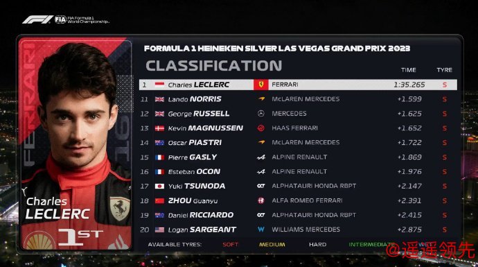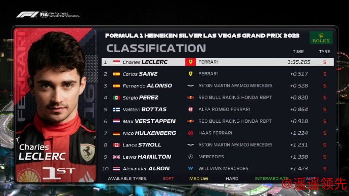 2023F1拉斯维加斯大奖赛FP2成绩: